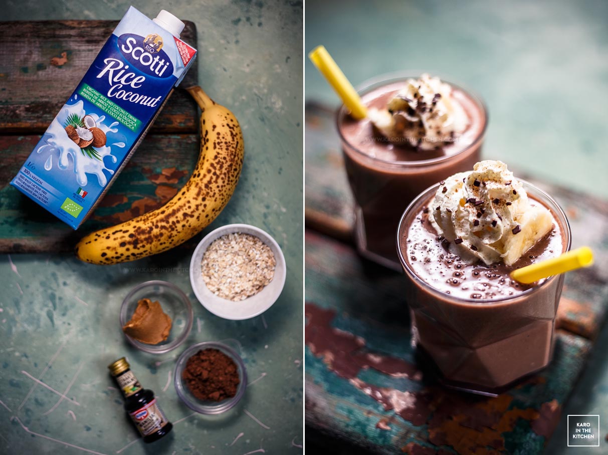 Co może być złego w zblendowanej w kilkanaście sekund mieszance zdrowych, kolorowych i smacznych składników? To czekoladowe smoothie jest bardzo delikatne i niesłychanie miękkie na podniebieniu. Dłuższą chwilę mi zajęło szukanie odpowiednich proporcji – przy zbyt dużej ilości płatków smoothie było za gęste i szorstkie, przy zbyt małej – nikt nie zauważyłby różnicy między tym, a zwykłym koktajlem. Spróbujcie, czekoladowe smoothie owsiane to naprawdę petarda!