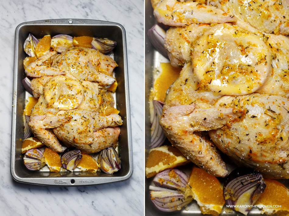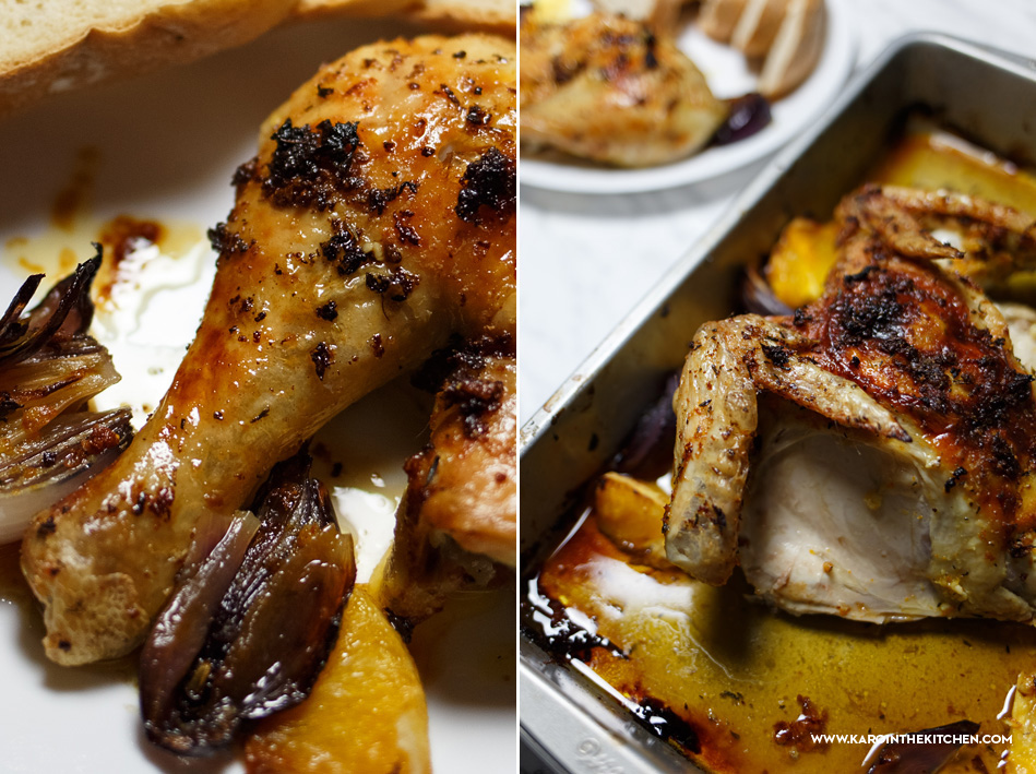 Home Z Mięsem Kurczak zagrodowy pieczony na płasko, z masłem czosnkowym i pomarańczami